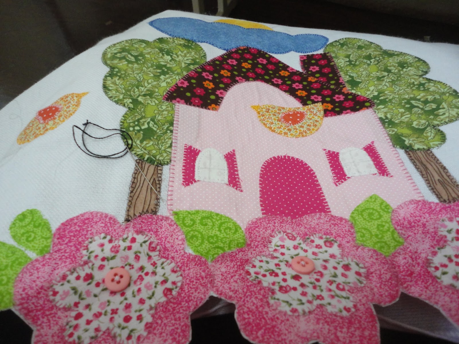 Uma graça esse projeto esta ficando bem delicado flores, árvores, casa e passarinhos ....e o rei sol.